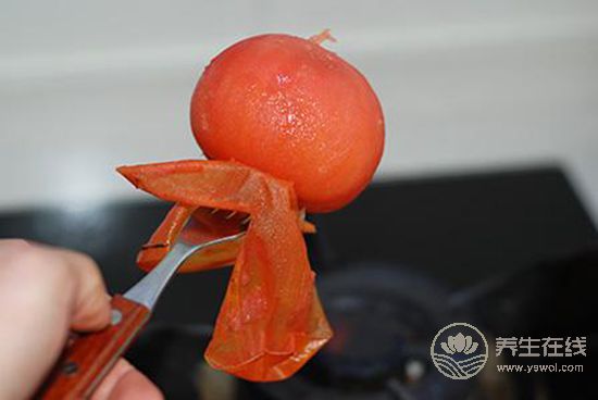 將西紅柿的底部插一個叉子,放在火上烤約10秒鐘左右,西紅柿的外皮就會開裂。稍稍冷卻幾秒鐘后,用手撕去外皮,撕掉的外皮很完整。烤所需時間最短,剝下的皮最完整,也最方便的方法!