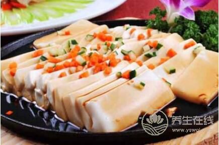 豆腐是大豆制成的,《神農本草經疏》記載大豆有補中益氣的作用,能有效地滋潤肺部,起到止咳作用。