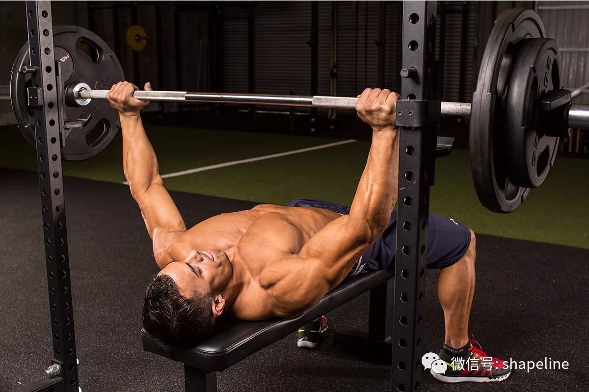 并且,即使條件允許杠鈴觸及胸部,也不要在各個重量中都直接觸及,因為80kg允許,100kg可不一定。在你完全能夠承受的重量中,杠鈴觸及胸部能夠讓胸肌得到很好的刺激,但在突破大重量時,一方面你不知道你是否能夠承受這種量,另一方面為了在過程中對抗更大的壓力,肩關節外展程度過大或者胸部過度拉伸,都會存在受傷風險。所以在突破大重量時,一是盡量控制下降速度,二是不要第一次嘗試就讓杠鈴觸及胸部,先用半程嘗試。