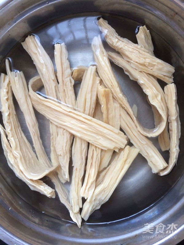 將干腐竹放入水中浸泡。直到膨脹即可。