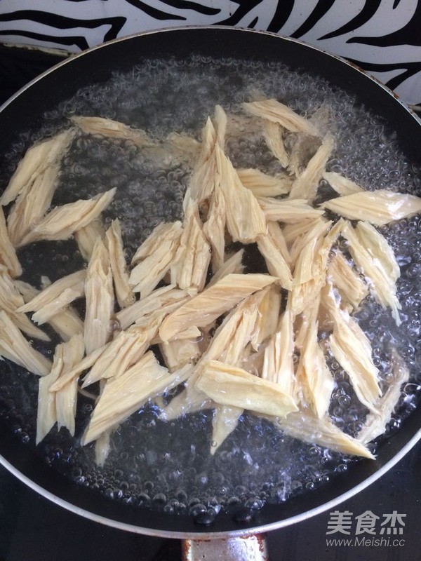 鍋中放入水,燒開,放入腐竹,焯一下水。