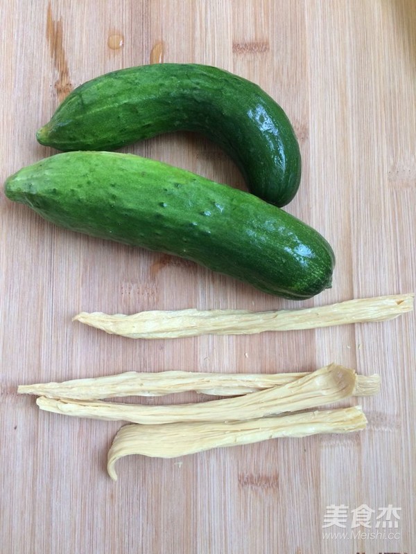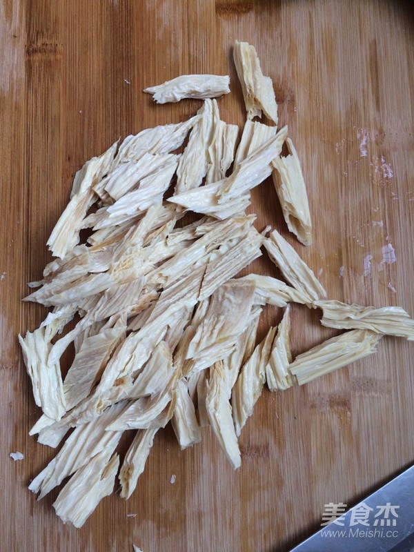 將泡發好的的腐竹撈出瀝干水,切斜段。
