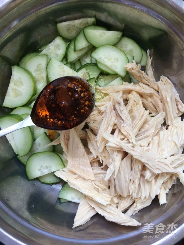 再將處理好的腐竹放入盆中。