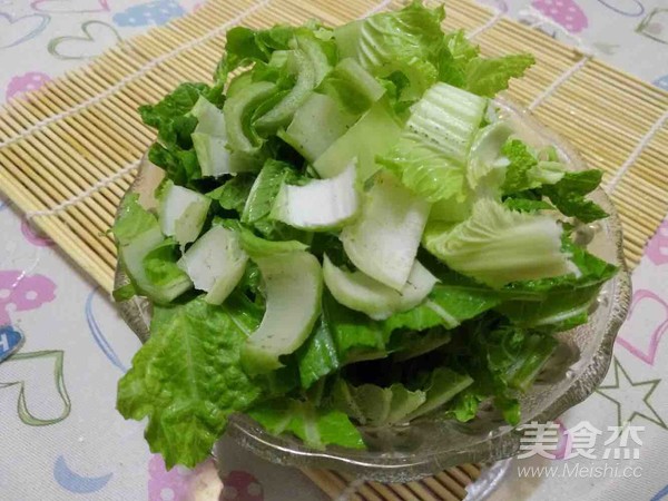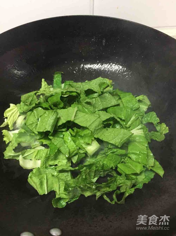 4.1.熱鍋涼油,放入小白菜,大火翻炒。