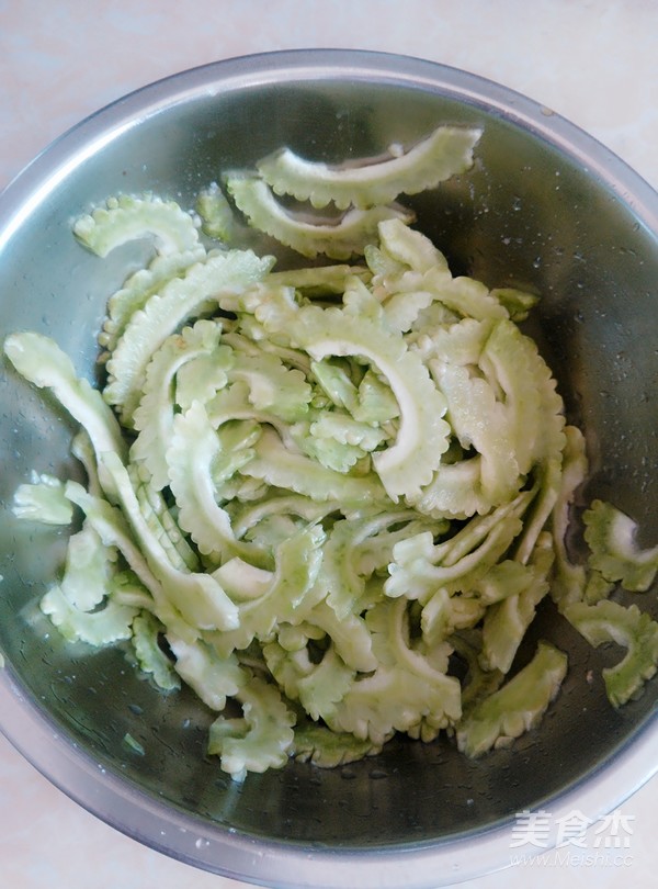 苦瓜用鹽腌制過(guò)后,可以去除部分苦味。