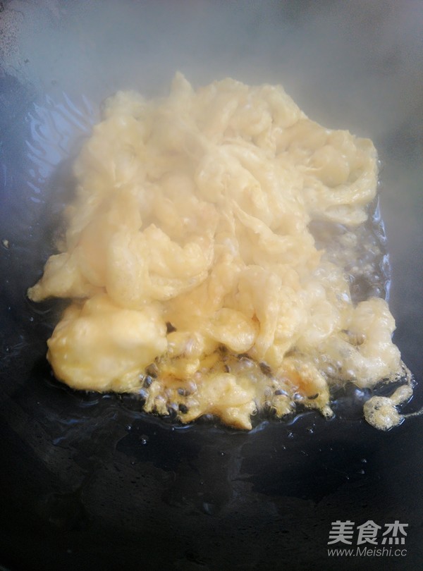 熱鍋倒油燒開(kāi),倒入雞蛋液劃散,盛出