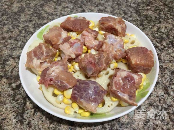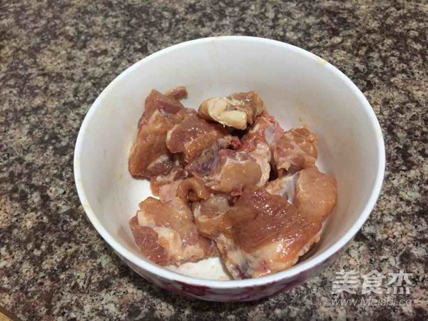 排骨加入淀粉和醬油腌制。