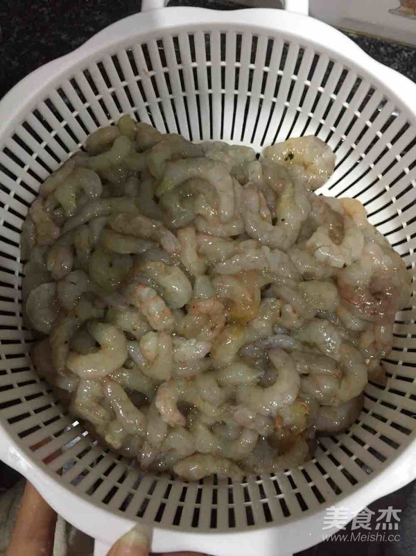 海蝦剝殼挑腸 ,洗干凈控水,切斷剁碎待用……