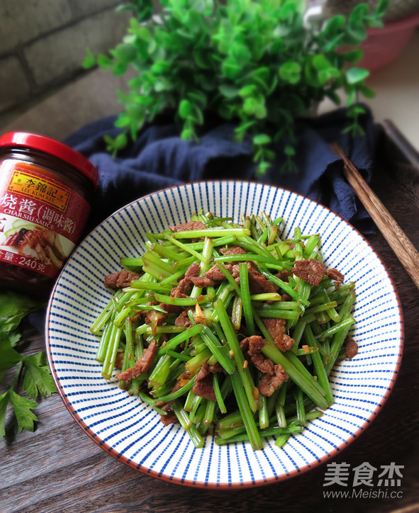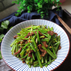 炒肉絲時要開中火,倒入芹菜后加開大火,炒芹菜時如果有水分可以不加水,如果較干要加少量的水防止糊鍋。