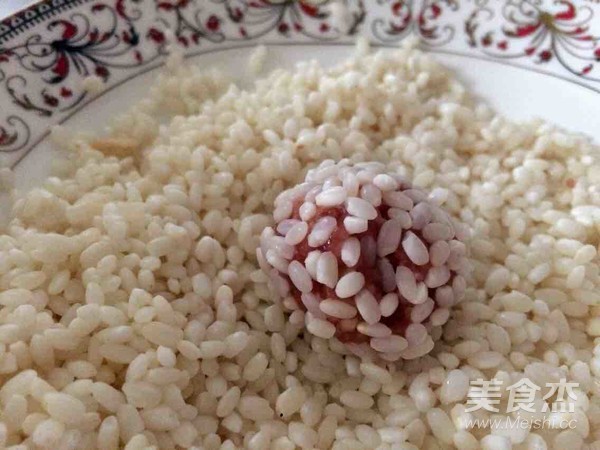 3.將丸子在江米上打滾就好了