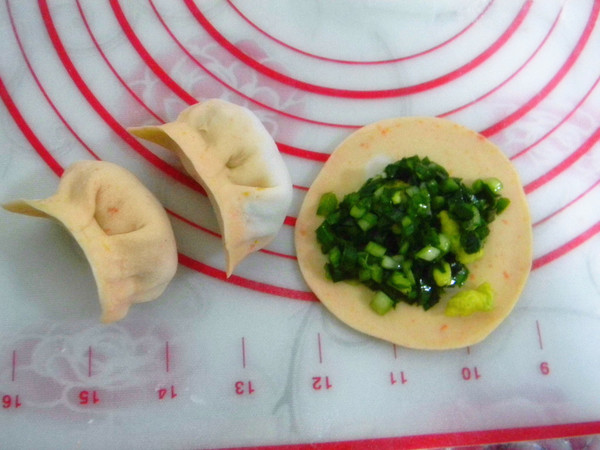 先用油拌餡,在放鹽,這樣韭菜不容易被腌出水來。