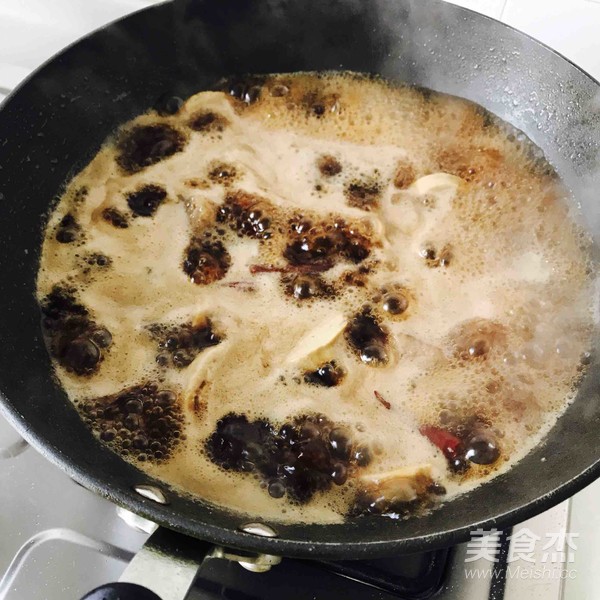 蓋上鍋蓋大火5分鐘,加入糖、老抽,大火5分鐘后,中火10分鐘,轉小火慢燉5分鐘,撒上蔥花,大火收汁,裝盤即可