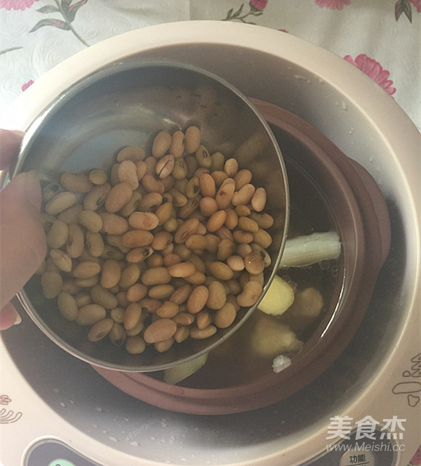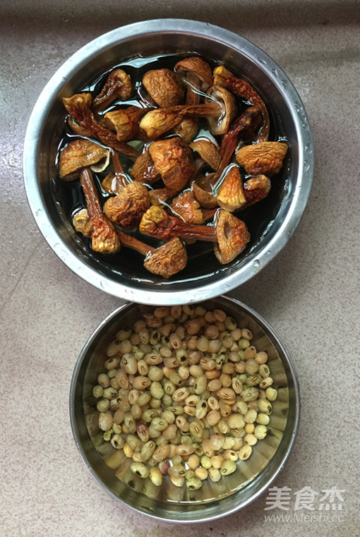 2.干松茸,黃豆,用溫水泡發(fā)。