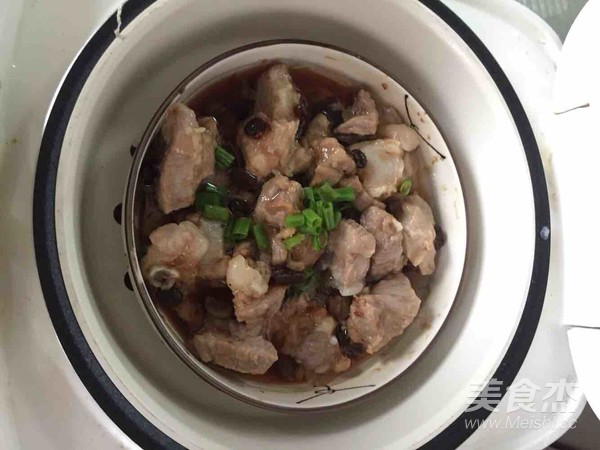 飯熟后,排骨也熟了。撒上蔥花裝飾一下即可
