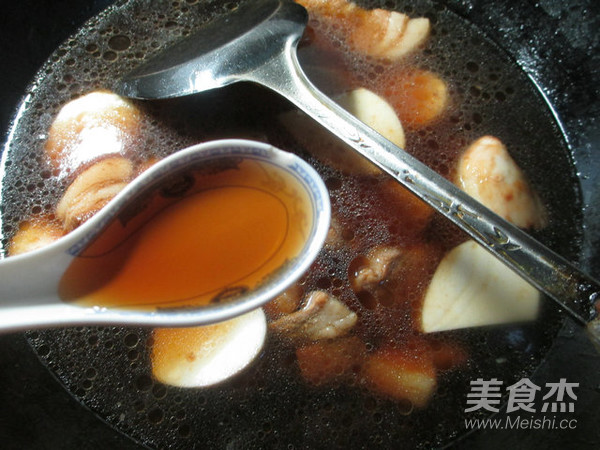 燒鍋加3湯勺油燒熱,下入焯好的五花肉,加3湯勺醬油。