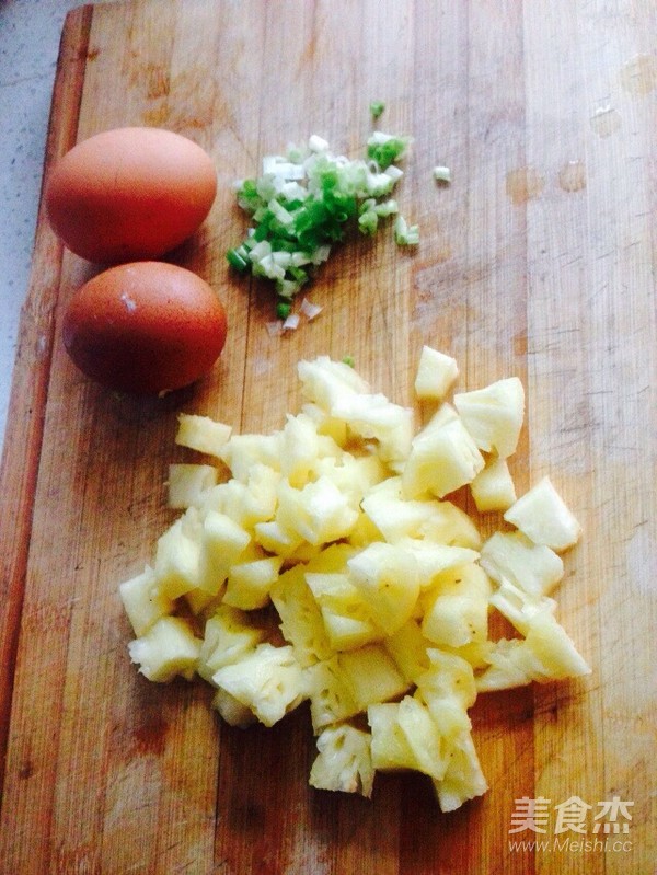 雞蛋2個,菠蘿切小塊,蔥切碎