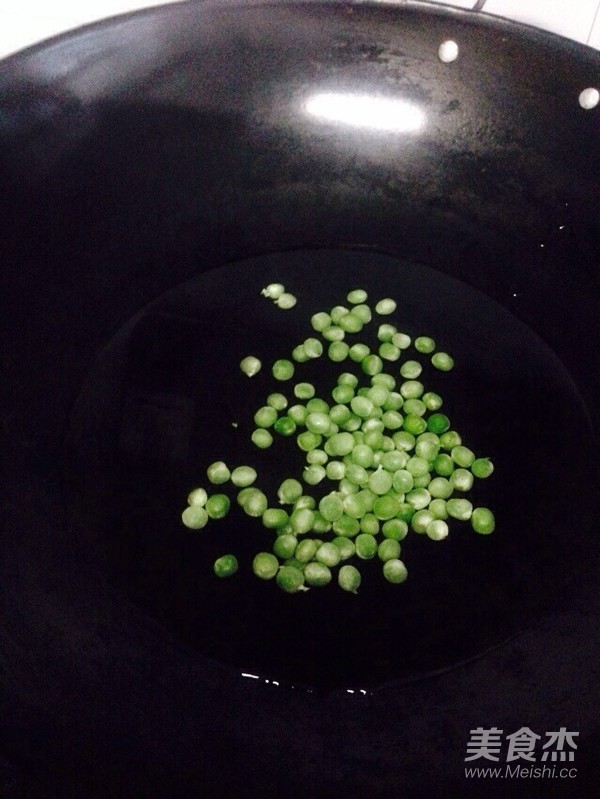 鍋里倒入適量的水,放入豌豆焯水,撈出瀝干水分備用