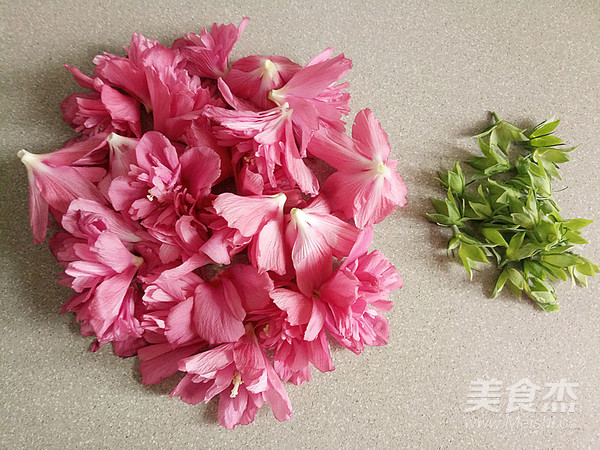 木槿花洗干凈控水,蒜瓣去皮切末、蔥洗凈切末。