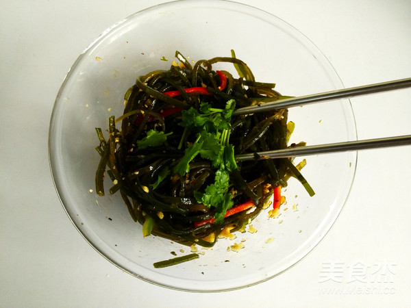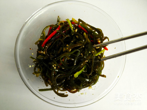 9.用筷子拌勻料汁和海帶;