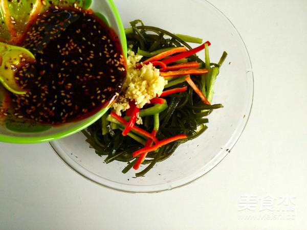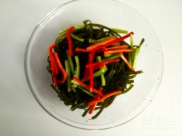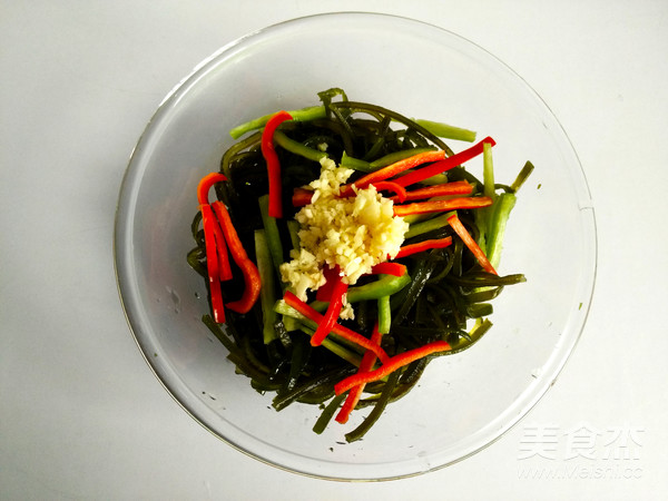 1.海帶絲開水上鍋蒸10分鐘;
