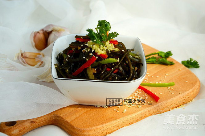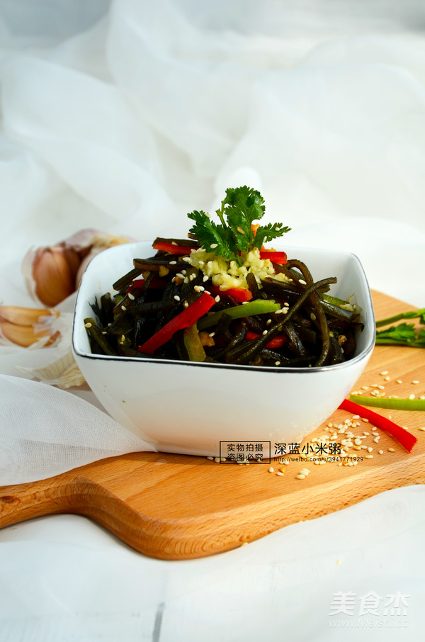 5.清洗干凈的海帶絲切成小段;
