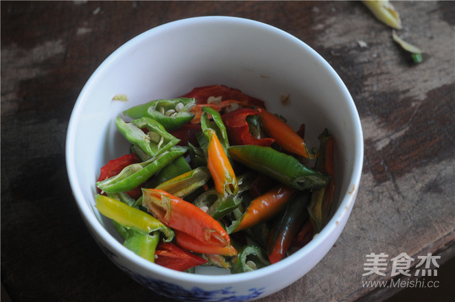 9.撒入鹽,翻炒一分鐘至青紅椒微微變軟。盛出來(lái)