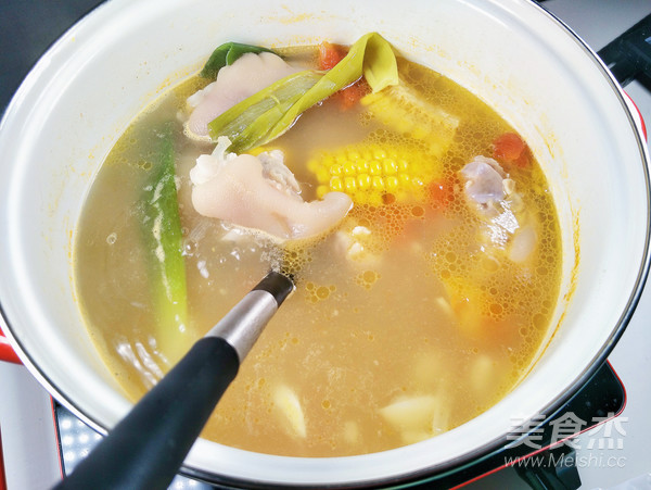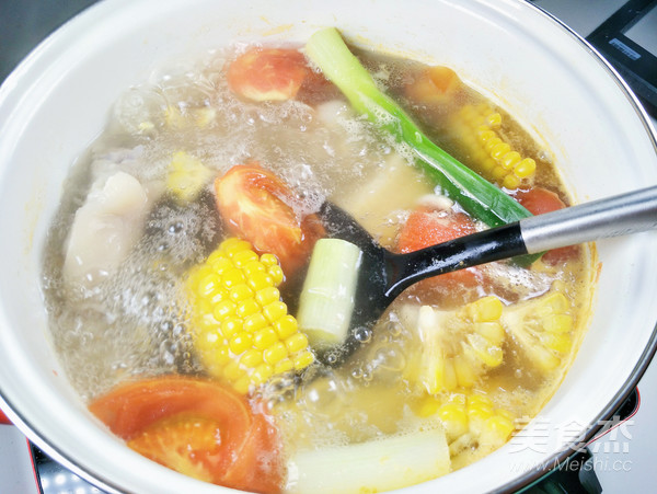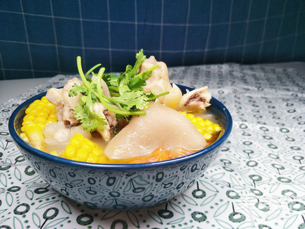 7.?玉米番茄豬蹄湯就做好了。