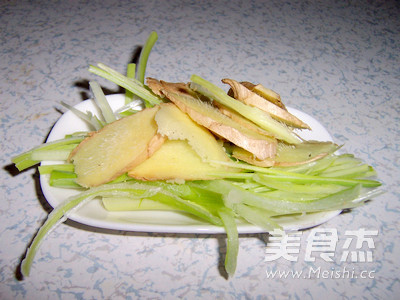 將一部分蔥姜切片,另一部切成絲備用
