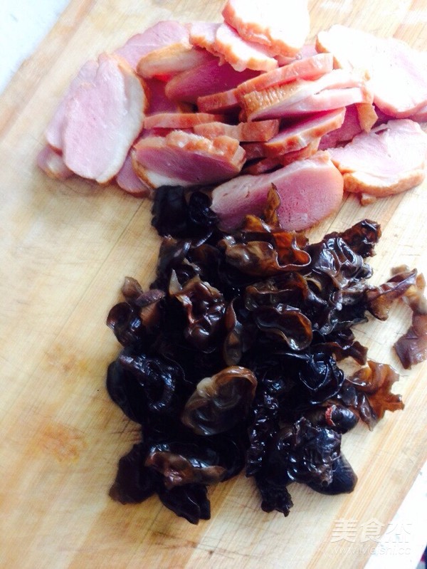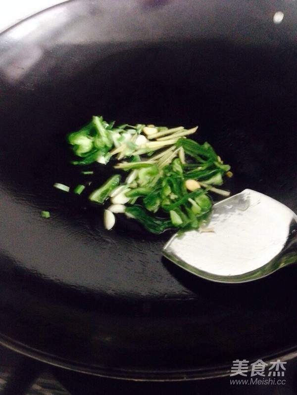 生姜和青椒切絲,大蒜切片,蔥切碎