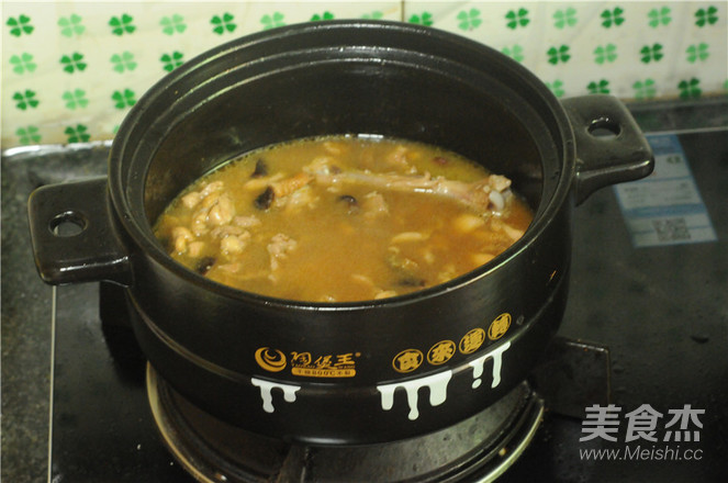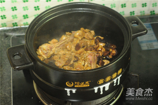 炒鍋倒油,炒香姜絲后放入雞肉翻炒