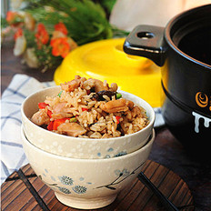 蓋上鍋蓋,大火煮開后轉中小火,慢慢講米飯煮熟