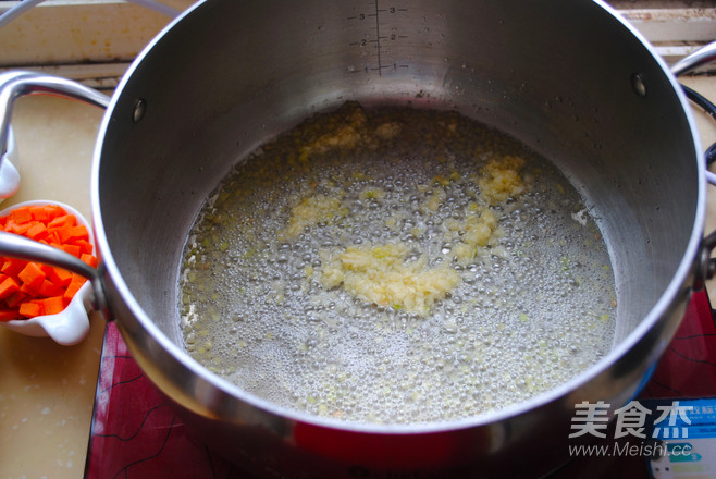 4.電磁爐火鍋檔800瓦的火加熱鍋,鍋里放油,油溫六成熱時放蒜姜末炒香。