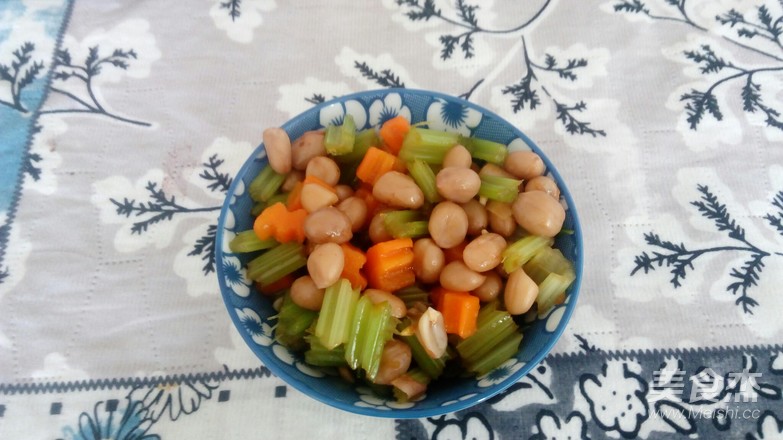 撈出控干水分放入小碗中,放入精鹽和白糖拌均即可。