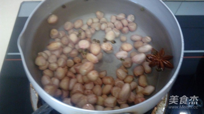 花生洗凈放入小鍋中,添水放入大料和花椒。