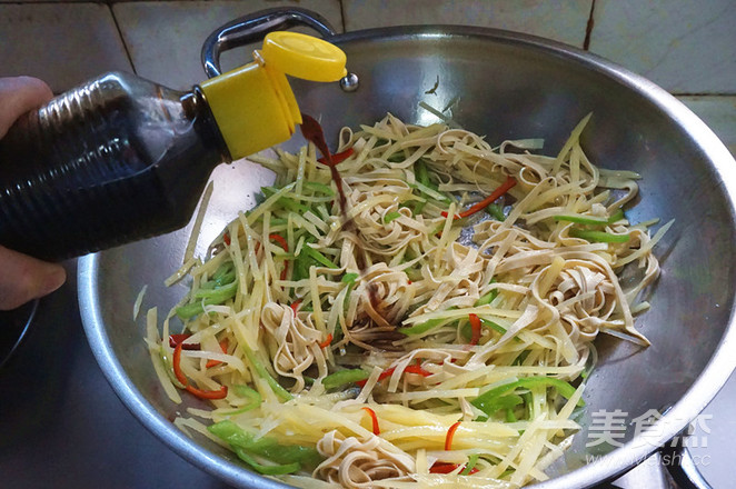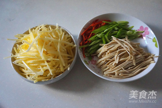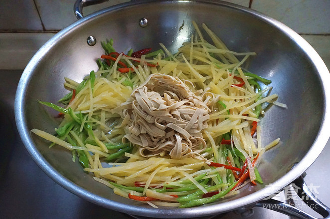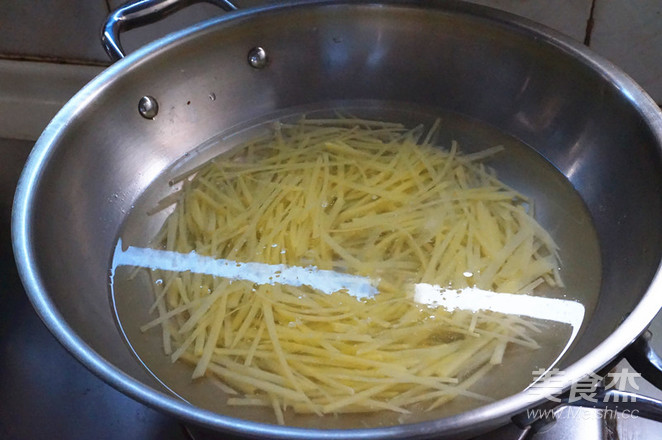 待鍋中水燒開后,把土豆絲倒入焯燙1分鐘撈起