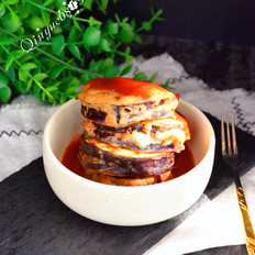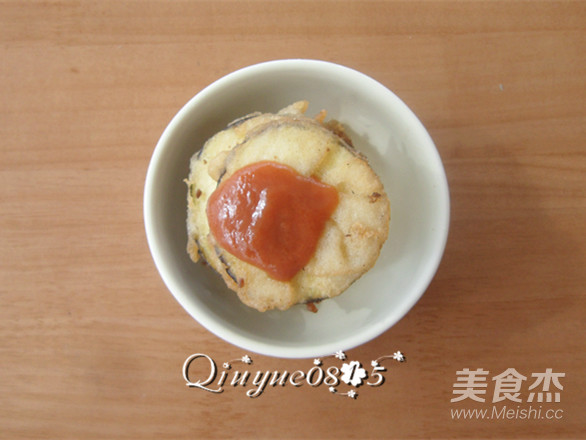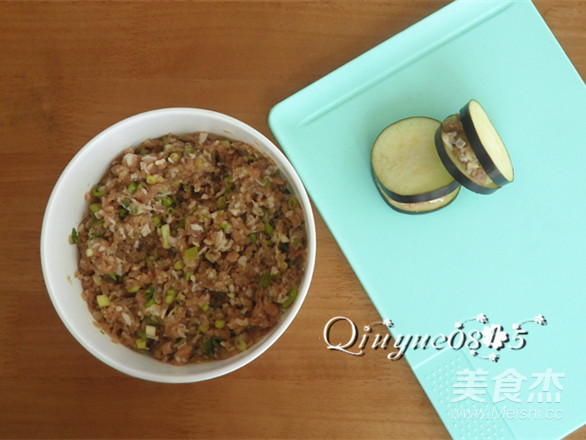 茄片間可抹上少許生粉,然后再把肉餡放入