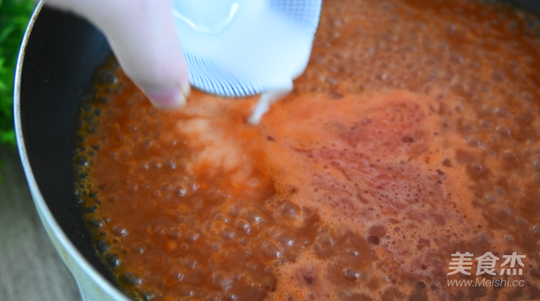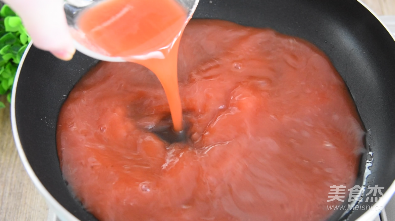 鍋中倒入少許油,炒開,倒入水果汁煮沸