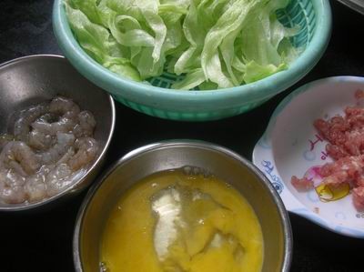 16.加入肉末 蝦 生菜大火蒸一分鐘拿出