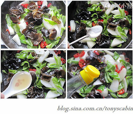 7.加入黑木耳后顛鍋繼續(xù)翻炒