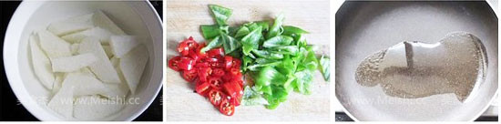 4.青椒切成三角形,剁椒直接切成小圓形