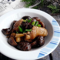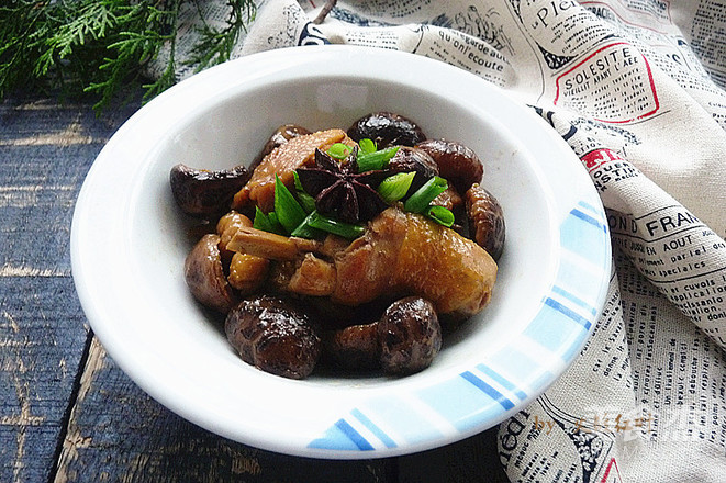 把香菇雞腿燒透,入味,下蔥段,關(guān)火