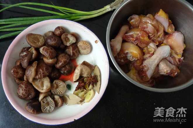 各材料,香菇提前泡發(fā)好,雞腿砍件