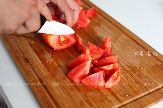 1.西紅柿洗凈后切滾刀塊