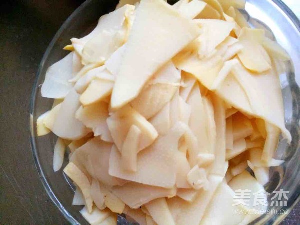倒入備好的筍片,翻炒,放鹽(兩勺),雞精(半勺)