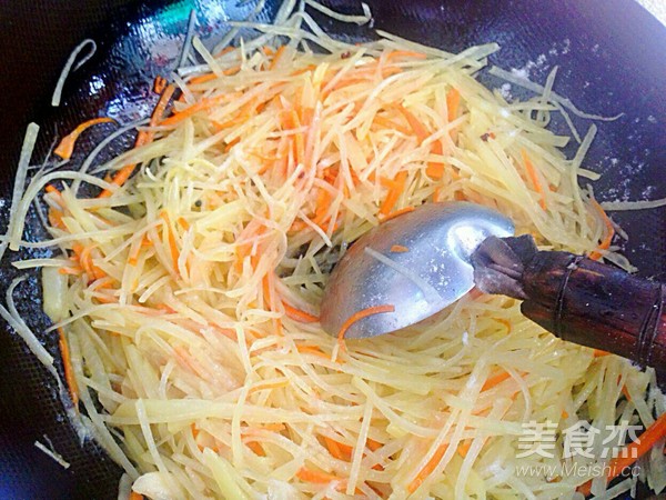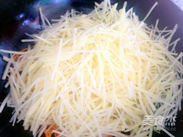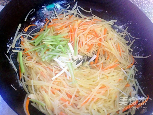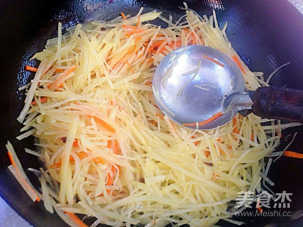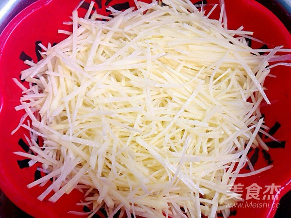 土豆絲泡過后清洗幾遍把淀粉洗干凈炒時(shí)不易糊鍋\n炒土豆絲時(shí)要用大火快速翻炒