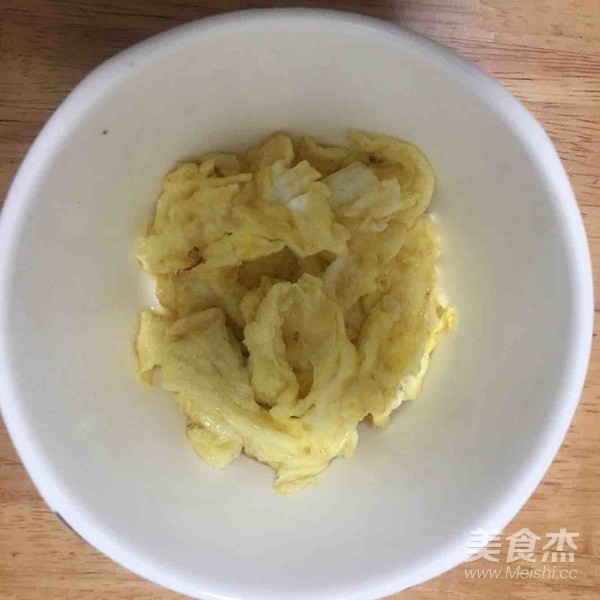 熱鍋冷油,先炒雞蛋,炒好后取出放在碗里備用。