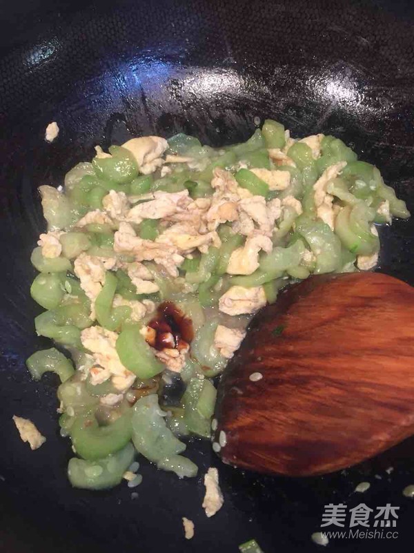絲瓜炒軟后將雞蛋倒入鍋中,加適量鹽,炒勻。