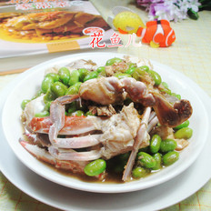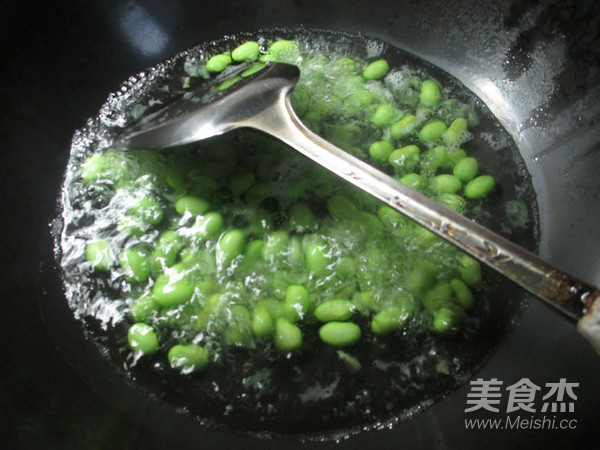 隨后,將淘洗好的毛豆下入清水鍋中焯開至熟,撈出。