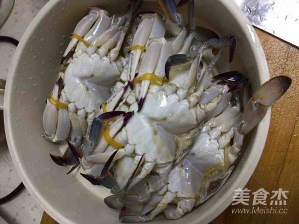 梭子蟹用刷子刷干凈,然后放入篦子里備用