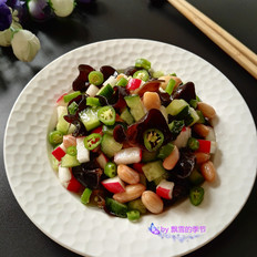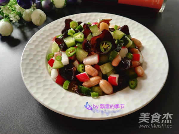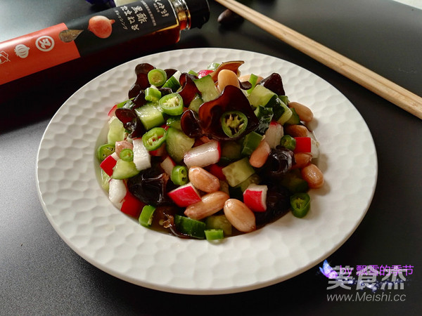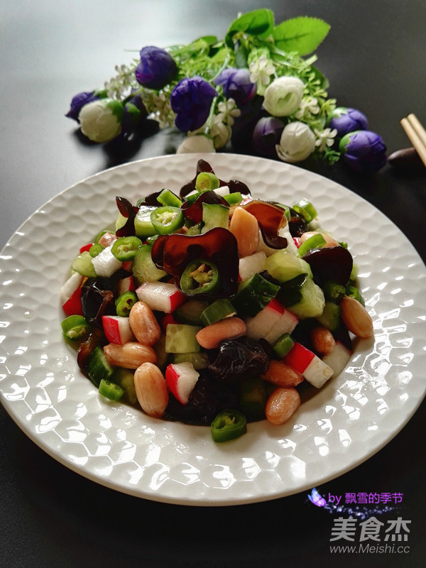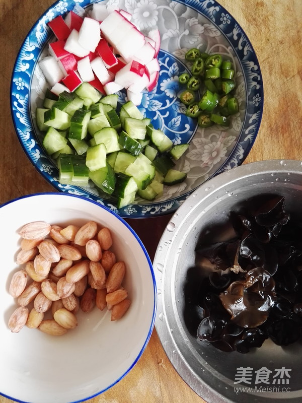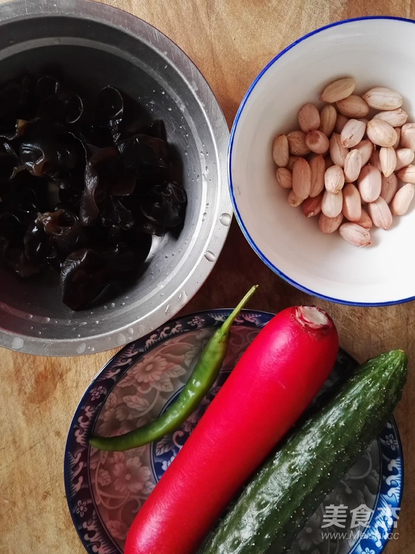 原料:黑木耳、花生、水蘿卜、黃瓜、綠尖椒